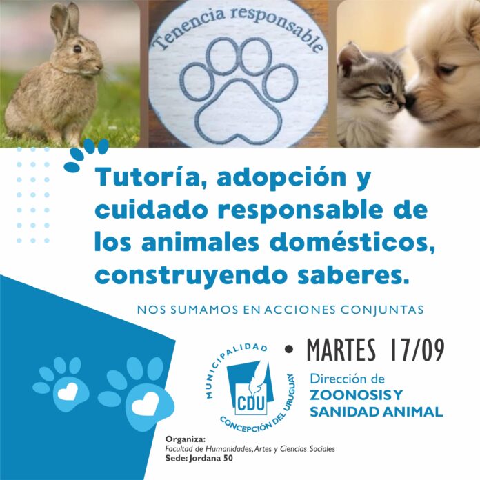 La Dirección de Zoonosis participará el martes 17 de septiembre de la charla sobre tutoría, adopción y cuidado responsable de animales domésticos. Será en la Facultad de Humanidades, Artes y Ciencias Sociales de la Universidad Autónoma de Entre Ríos (Uader).